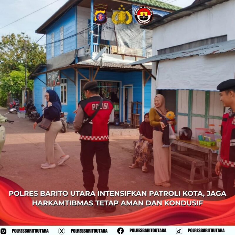 โ€œPatroli Kota Harkamtibmas ini merupakan langkah nyata Polres Barito Utara dalam mencegah potensi gangguan kamtibmas. Kehadiran personel Polri di tengah masyarakat diharapkan dapat memberikan rasa aman serta meningkatkan kepercayaan publik terhadap Polri,โ€ ujar Iptu Novendra W.P.